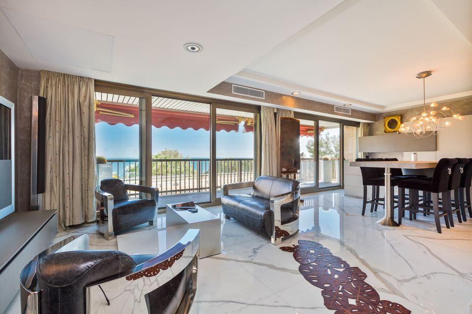 Эксклюзивный комплекс Le Mirabel в Золотом Треугольнике Монако предлагает нестандартный апартамент площадью 124 м2 с видом на море с террасы 20 м2.