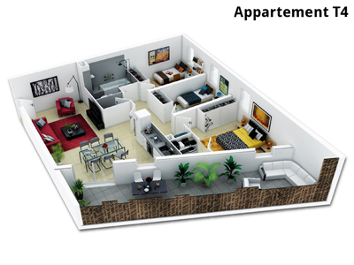 Комплекс состоит из апартаментов, в апартаментах от 2 до 4 комнат.