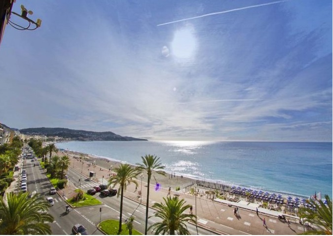 с открытым головокружительным видом на море, пляж и на Променад д'Англе.