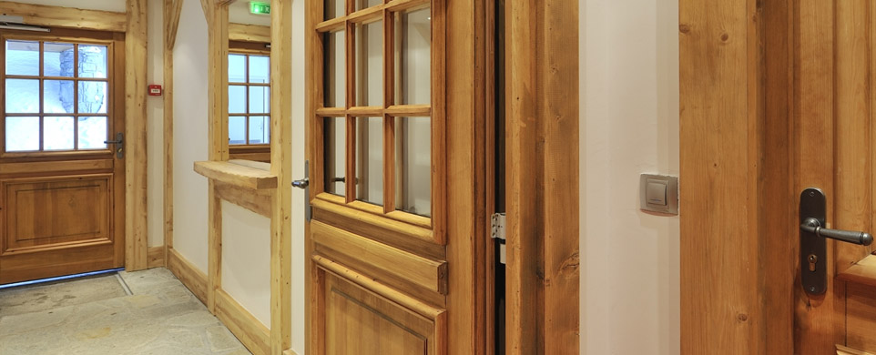 Стены в комнатах отделаны деревом.