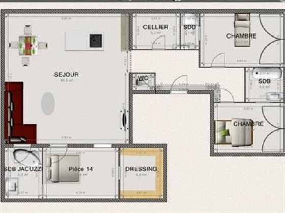 Три спальни, три санузла, гостиная-кухня, вспомогательные помещения.